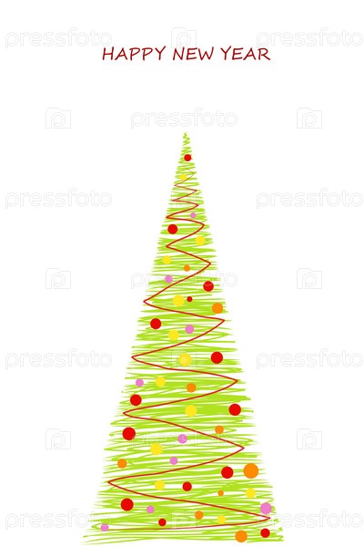 Новогодняя елка, иллюстрация на белом фоне
