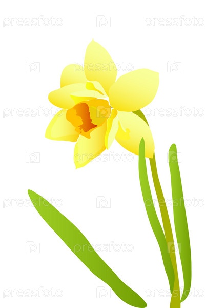 Желтый нарцисс, иллюстрация на белом фоне