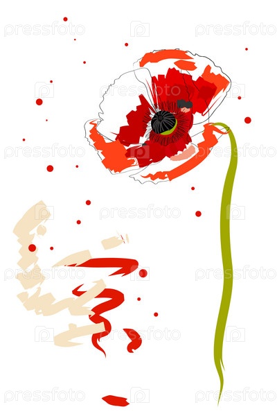 Красный полевой мак, иллюстрация на белом фоне