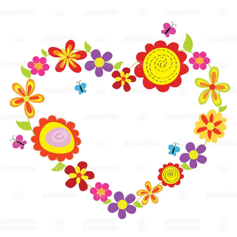Сердце из ярких цветов на белом фоне