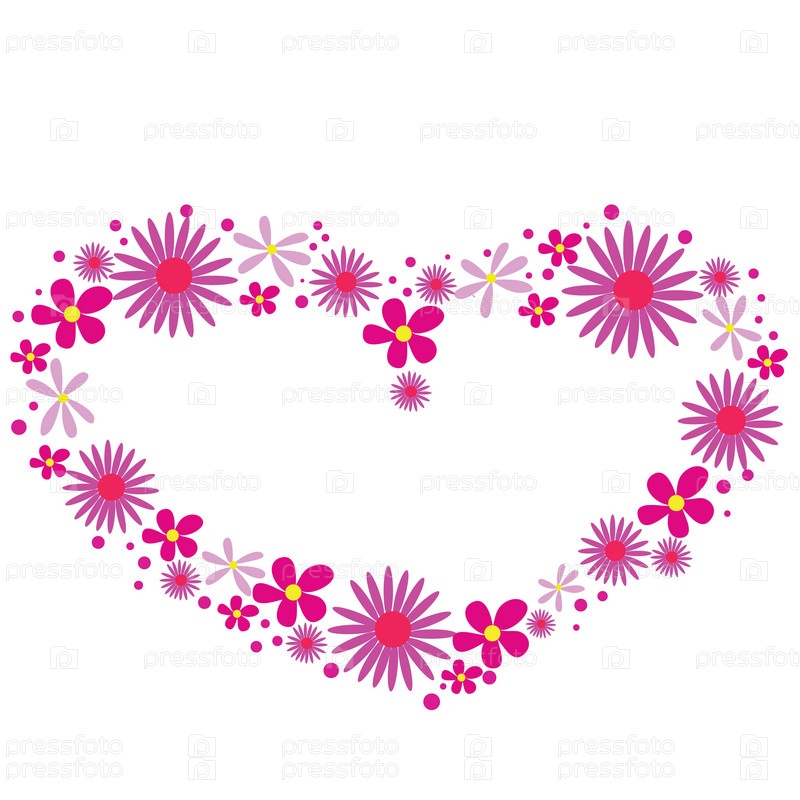 Сердце из цветов, иллюстрация на белом фоне