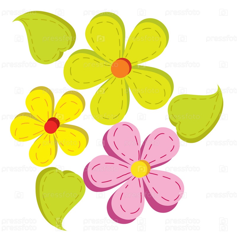 Розовые, зеленые и желтые цветы