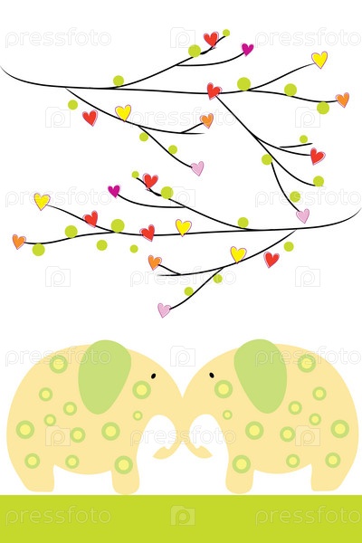 Два слона и сердечки на белом фоне