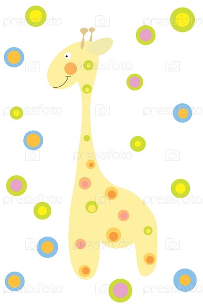 Жираф на белом фоне с разноцветными кругами