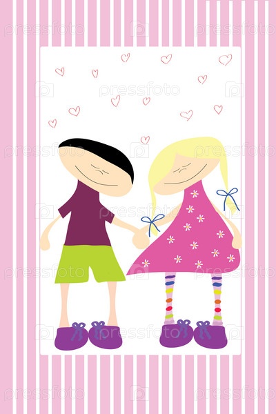 Милая счастливая пара влюбленных на полосатом фоне