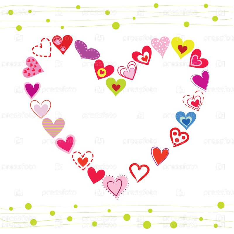 Сердце из маленьких сердечек на белом фоне