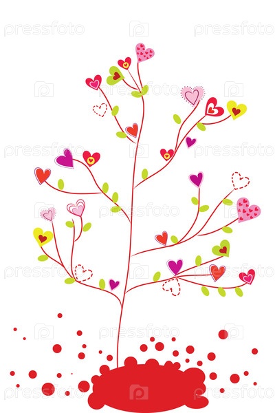 Дерево из сердец на белом фоне