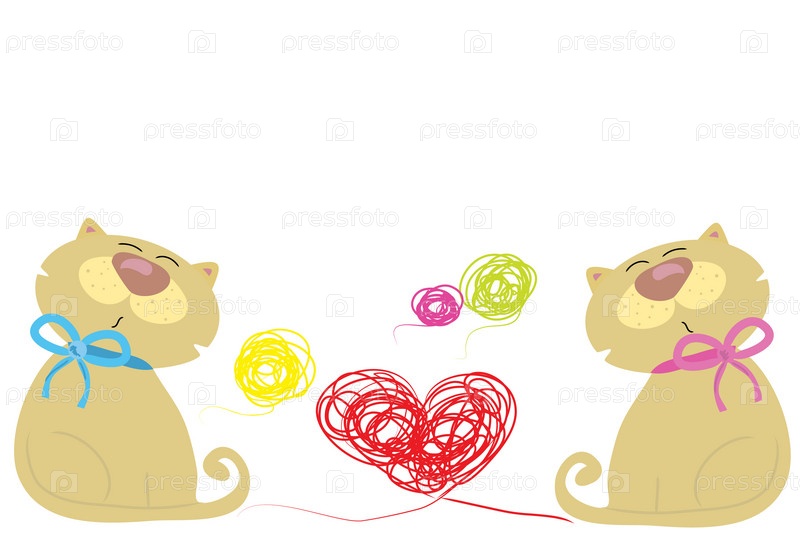 Влюбленные кот и кошка с сердечком