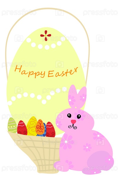 Пасхальная открытка с кроликом и пасхальными яйцами