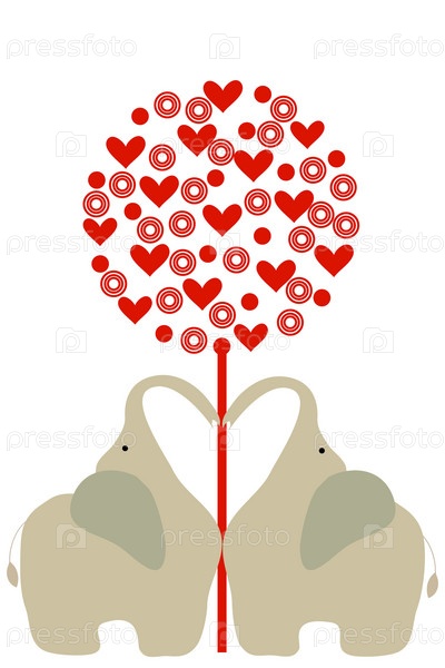 Два слона у дерева с сердечками