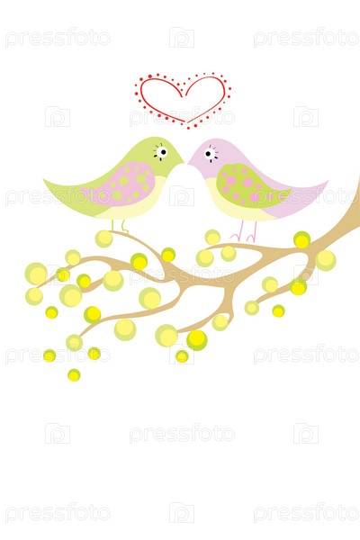 Две влюбленные птицы на ветке