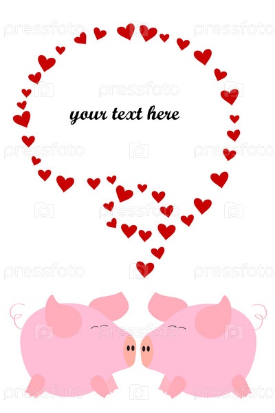 Два розовых поросенка и рамка для текста из сердечек