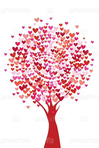 Красивое дерево с кроной из сердец