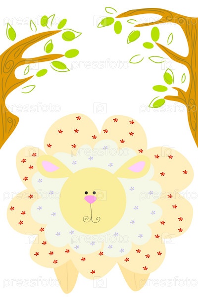 Симпатичная пушистая овечка на белом фоне