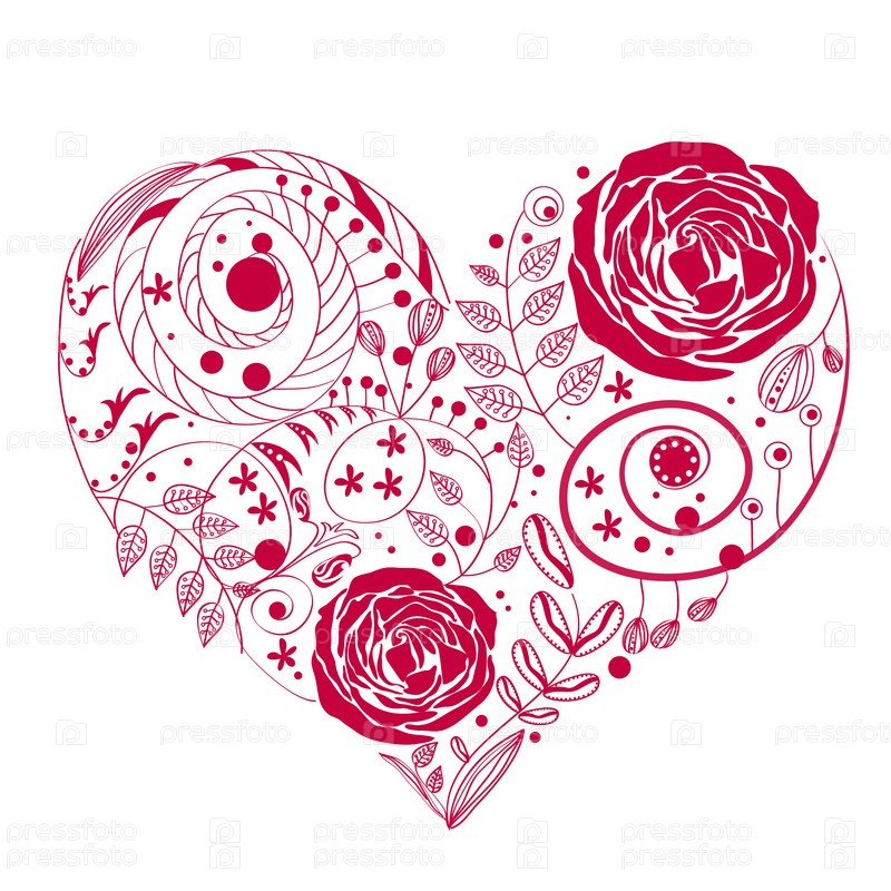 Красное сердце с цветочным узором на белом фоне