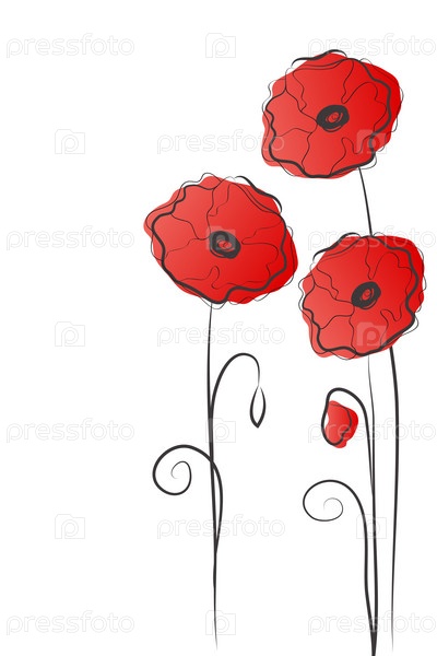 Ярко-красные маки на белом фоне