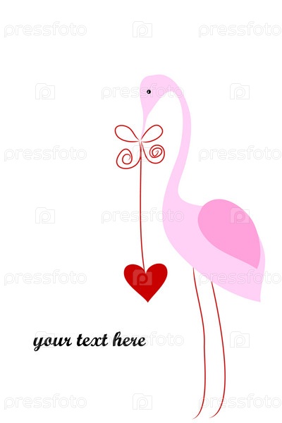 Фламинго с сердцем на белом фоне, векторная графика
