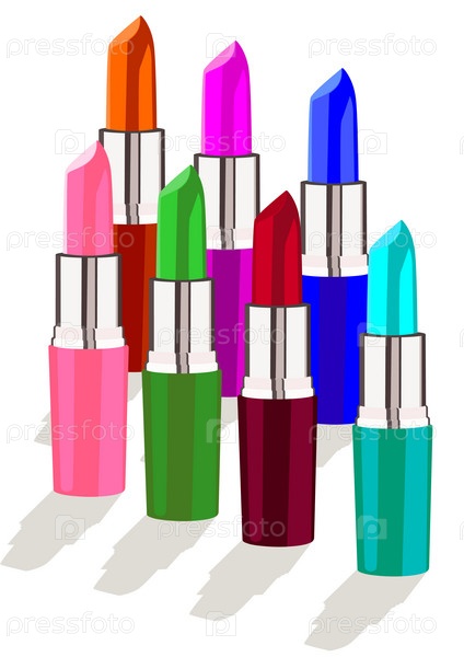 Разноцветная губная помада на белом фоне