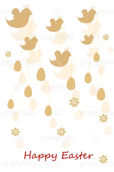 Коричневые птицы, надпись 'Счастливая Пасха' и пасхальные яйца
