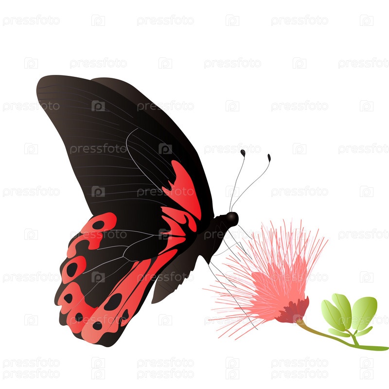 Бабочка и цветок на белом фоне