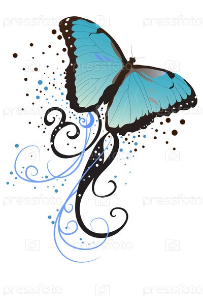 Векторная иллюстрация с красивой голубой бабочкой на белом фоне