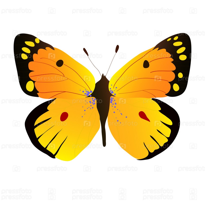 Векторная иллюстрация с красивой черно-оранжевой бабочкой на белом фоне