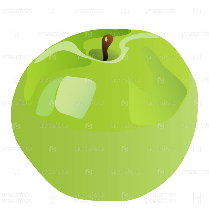 Иллюстрация со спелым зеленым яблоком на белом фоне