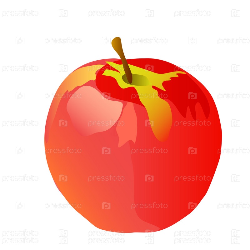 Иллюстрация со спелым красным яблоком на белом фоне