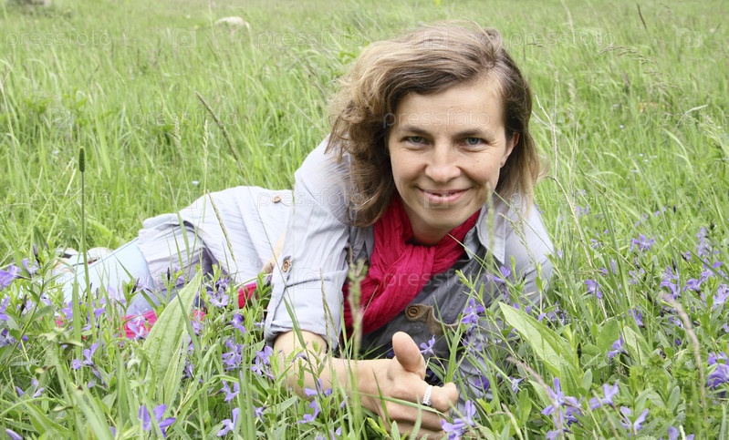 Женщина на зеленом лугу