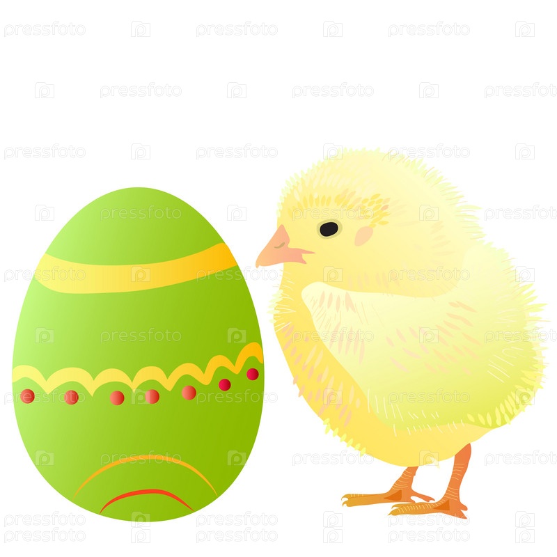 Маленький желтый цыпленок с зеленым куриным яйцом
