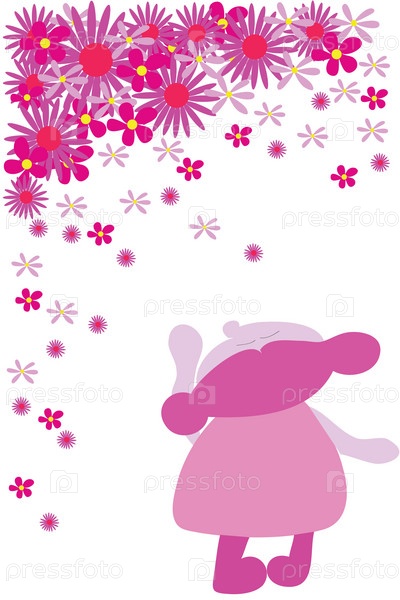 Смешная девочка и цветы на белом фоне