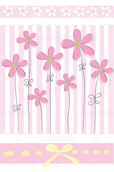 Цветы на полосатом фоне, векторная графика
