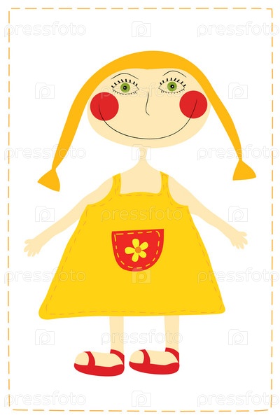 Смешная рыжая девочка, иллюстрация на белом фоне