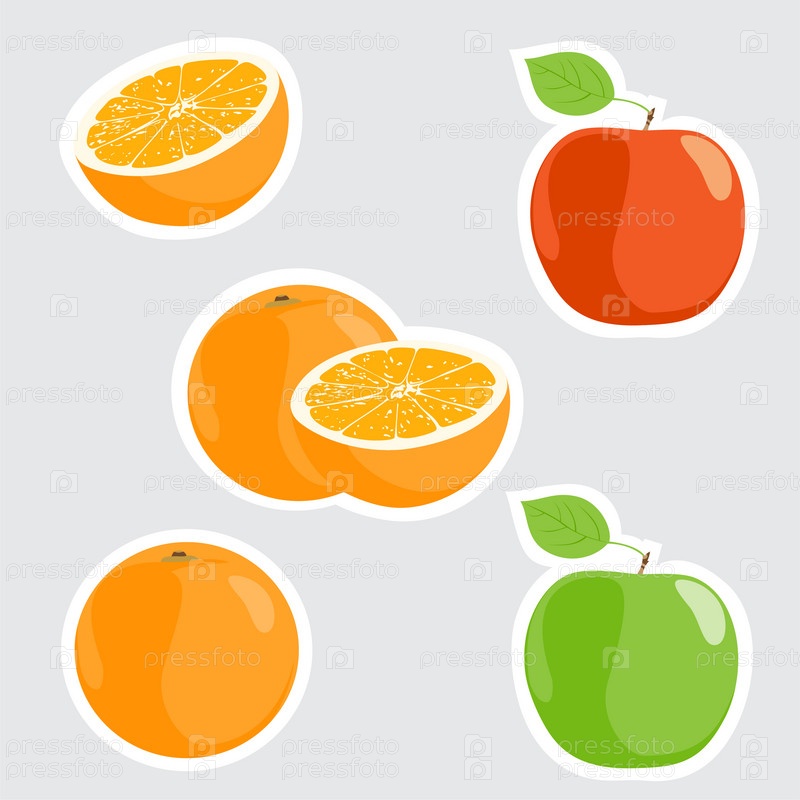 Яблоки и апельсины на сером фоне