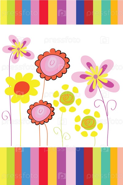 Много красивых разноцветных цветов на полосатом фоне