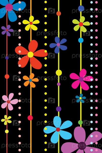 Много красивых цветов на черном фоне