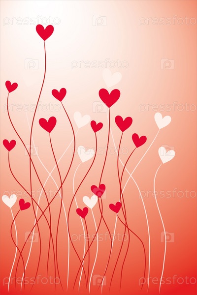 Красные и белые сердечки на розовом фоне