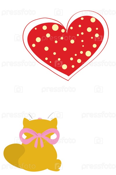 Котенок с сердечком, иллюстрация на белом фоне