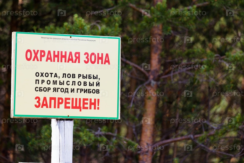 Знак "Охранная зона" в лесу