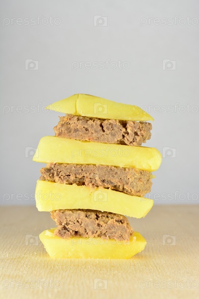Отварной картофель и фарш на столе