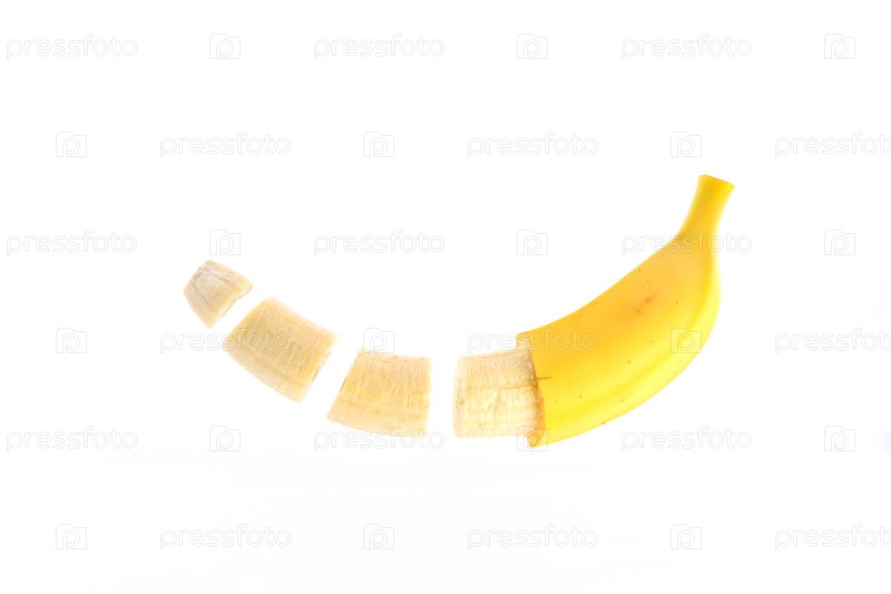 Нарезанный банан на белом фоне
