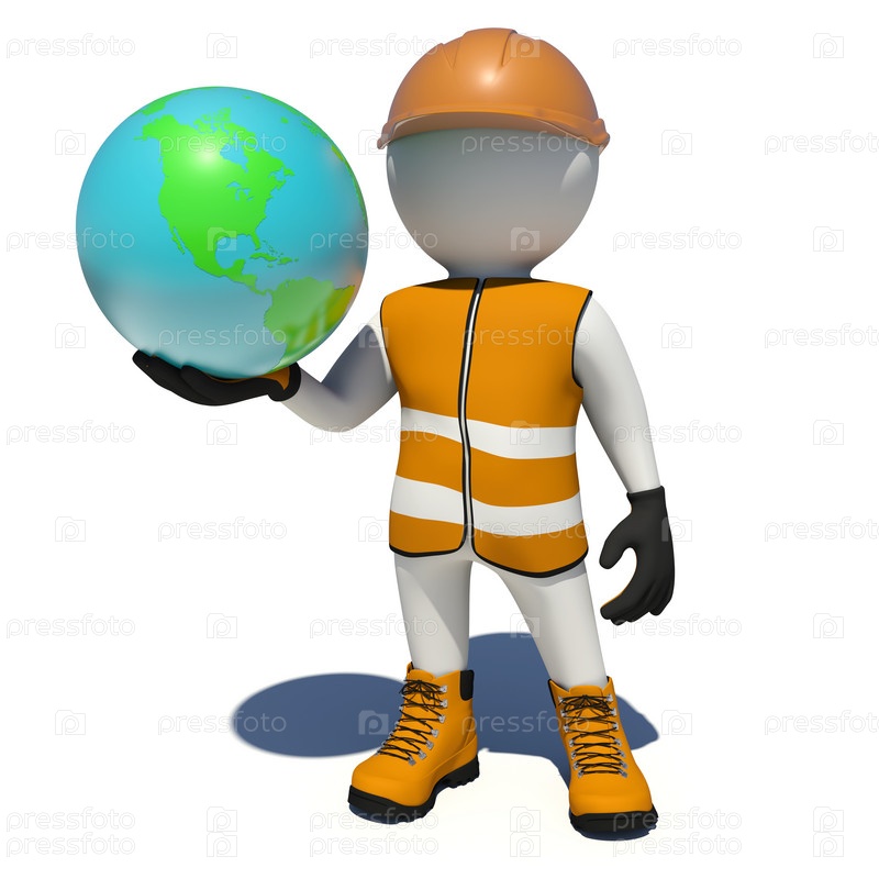 Рабочий держит глобус
