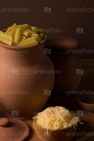 Натюрморт с макаронными изделиями и керамикой