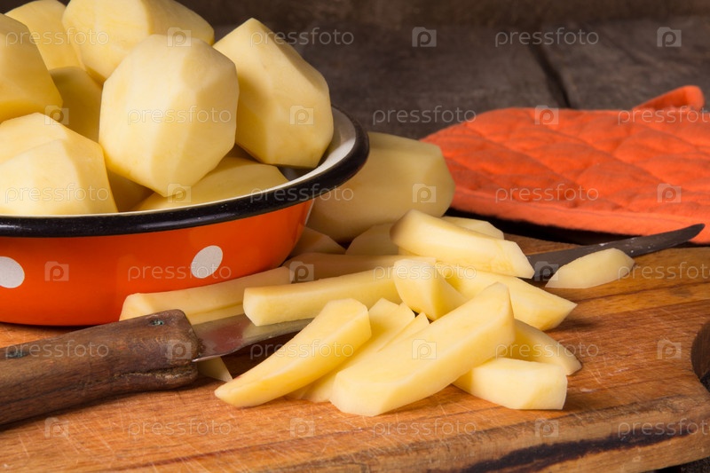 Сырой картофель в эмалированной миске