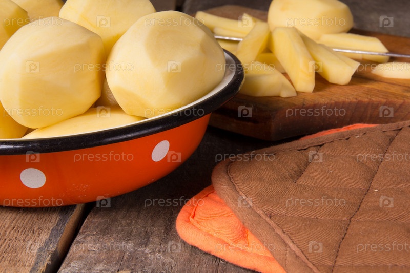 Сырой картофель в эмалированной миске