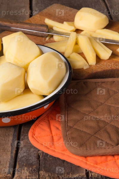 Сырой картофель в эмалированной миске