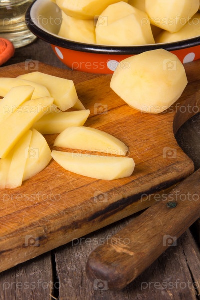 Сырой картофель в эмалированной миске