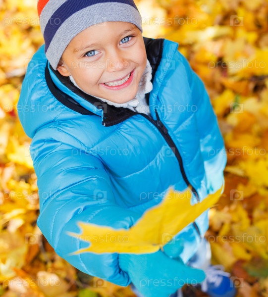 Мальчик с осенними листьями