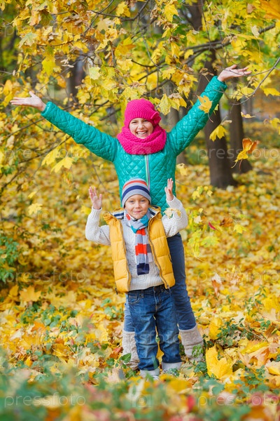 Дети с осенними листьями