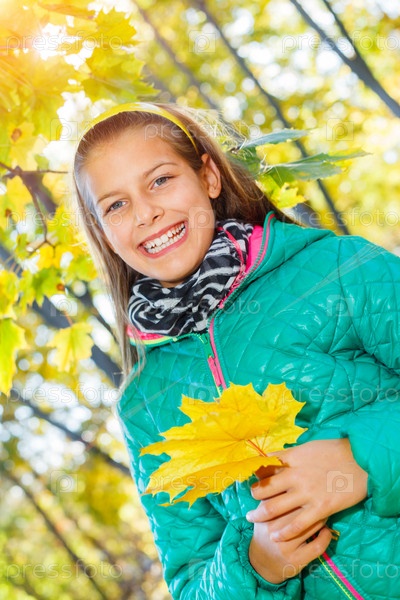 Милая девочка с осенними листьями